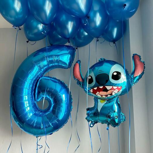 Композиция «Храбрый Стич» в интернет-магазине OCEAN BALLOONS. Заказать с доставкой! Тел.: +7 (495) 773-43-75.