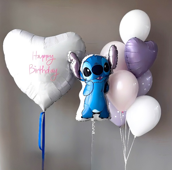 Композиция «Подарок от Стича» в интернет-магазине OCEAN BALLOONS. Заказать с доставкой! Тел.: +7 (495) 773-43-75.