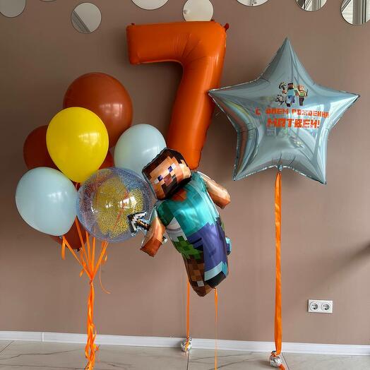 Композиция «Яркий майнкрафт» в интернет-магазине OCEAN BALLOONS. Заказать с доставкой! Тел.: +7 (495) 773-43-75.