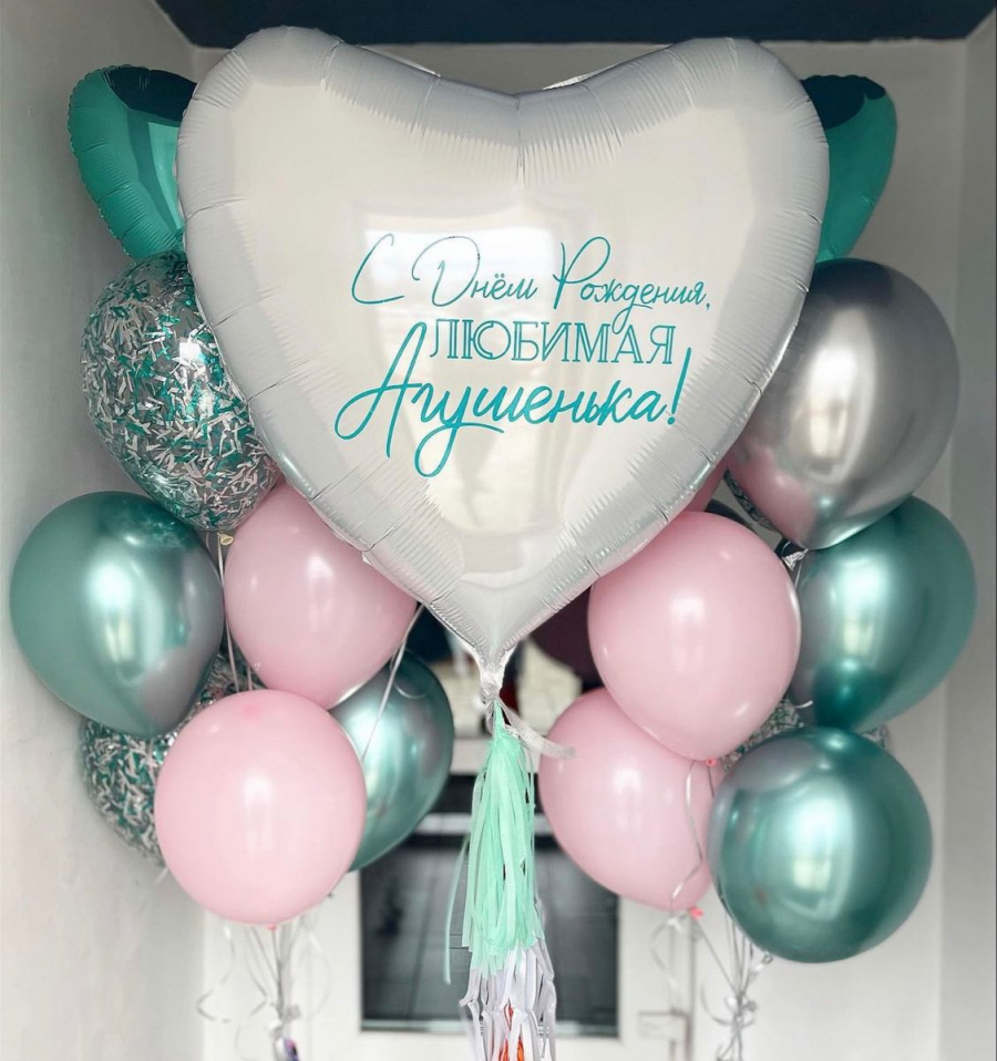 - Гелиевые шары хром и шарики с конфетти 18 шт;